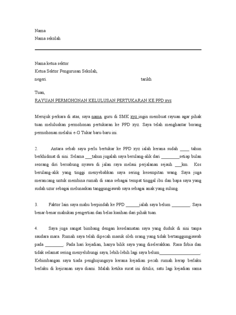 Contoh Surat Rayuan Pertukaran Pdf