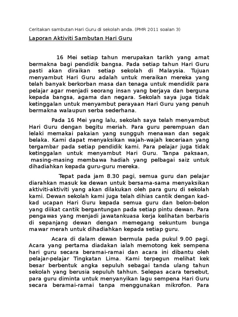 Laporan Ceritakan Sambutan Hari Guru Di Sekolah Anda Pdf