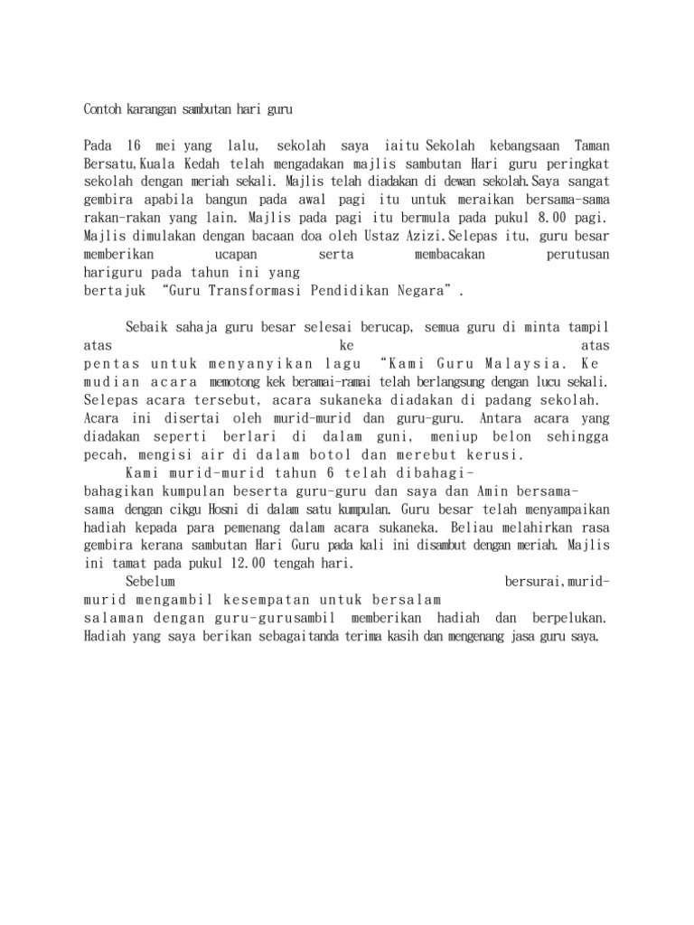 Contoh Karangan Ucapan Hari Guru Karangan Pendek Sambutan Hari Guru Laporan Majlis Sambutan Hari Raya Whatsapp 0196626057 For Bm Tuition Through Whatsapp Or Visit Www Cikgusuguz Com My Wow 50